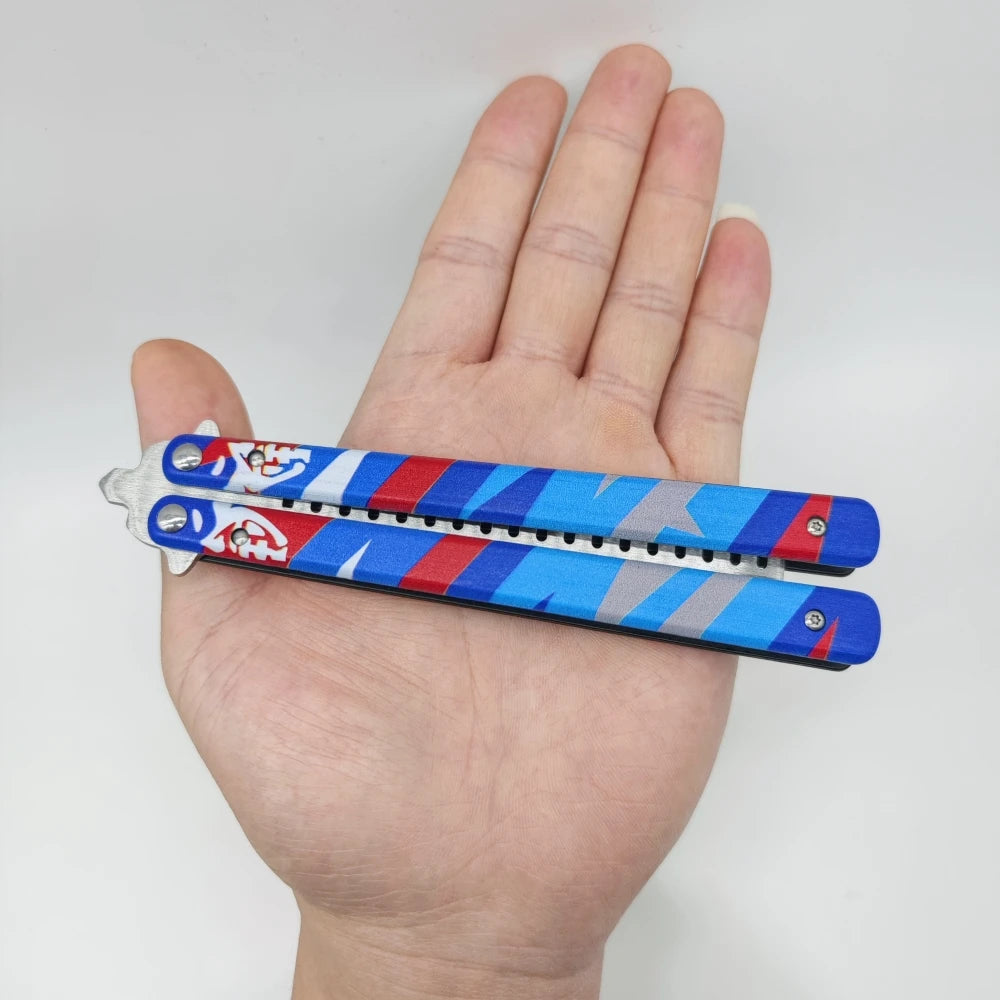 Ce couteau papillon Valorant combine design élégant, robustesse et praticité. Il est parfait pour les sessions d’entraînement à la manipulation de couteau (balisong) ou comme objet décoratif sur votre bureau ou étagère. Sa finition en métal détaillée en fait également un objet de collection hautement réaliste pour tous les fans de jeux vidéo.