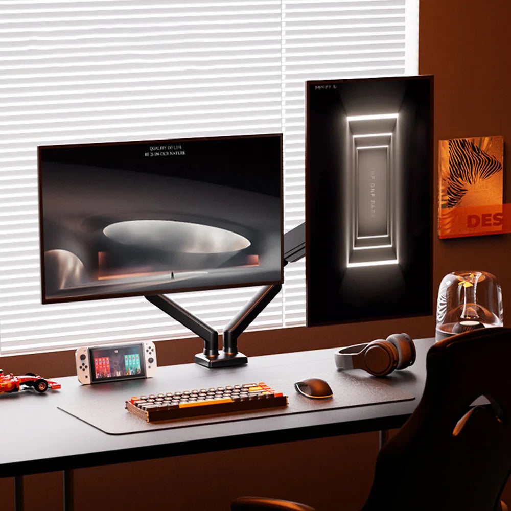 Optimise ton setup PC ou gaming avec ce bras articulé à gaz pour double écran. Parfait pour le gaming, le travail ou le montage vidéo, il libère de l’espace, améliore ta posture et te permet de passer d’une position assise à debout facilement 🖥️🔥