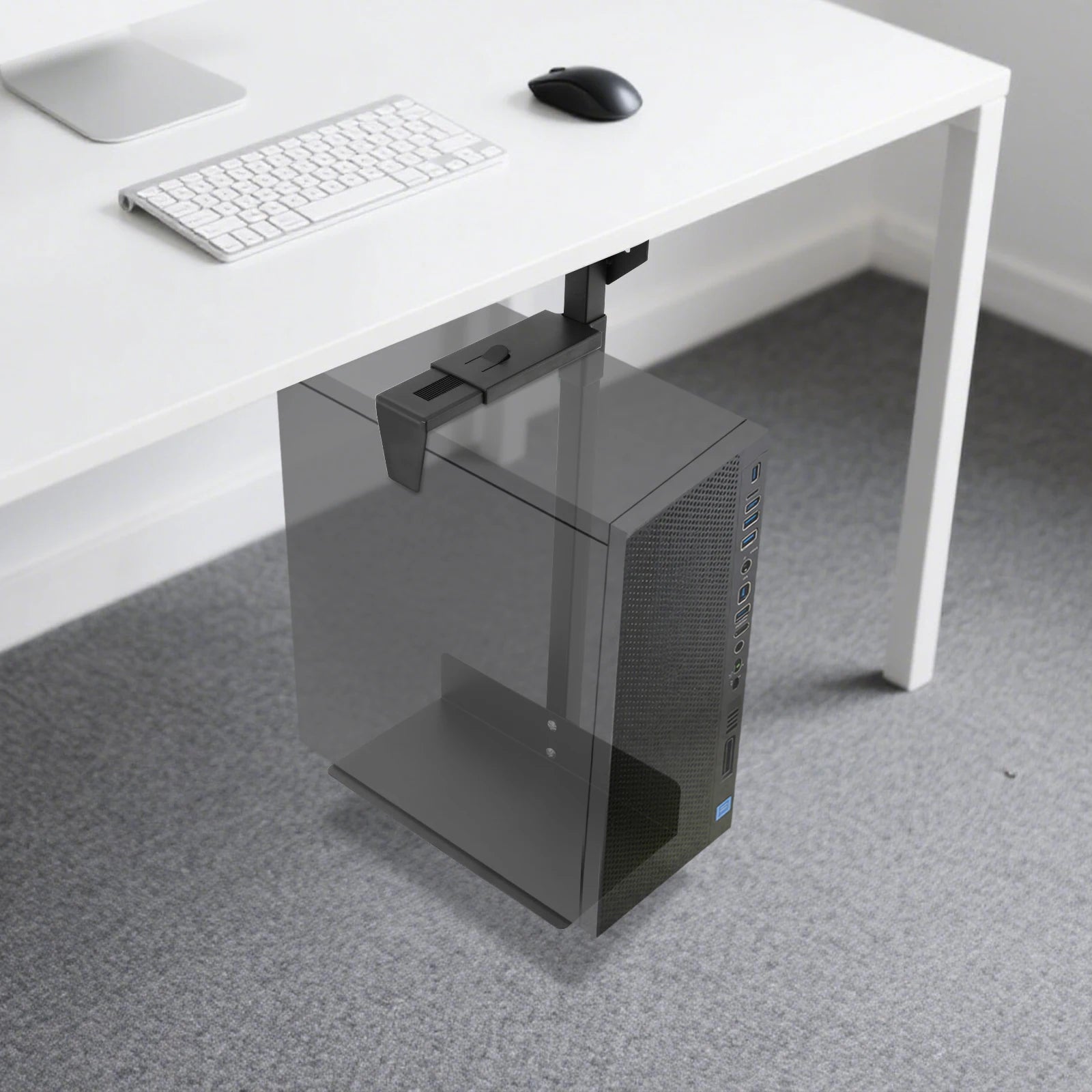 Optimisez votre espace de travail avec ce support PC suspendu sous bureau, conçu pour maintenir votre unité centrale en toute sécurité tout en libérant un maximum d’espace sur votre poste. Fabriqué en acier carbone robuste, il offre une excellente durabilité et une capacité de charge allant jusqu’à 30 kg.