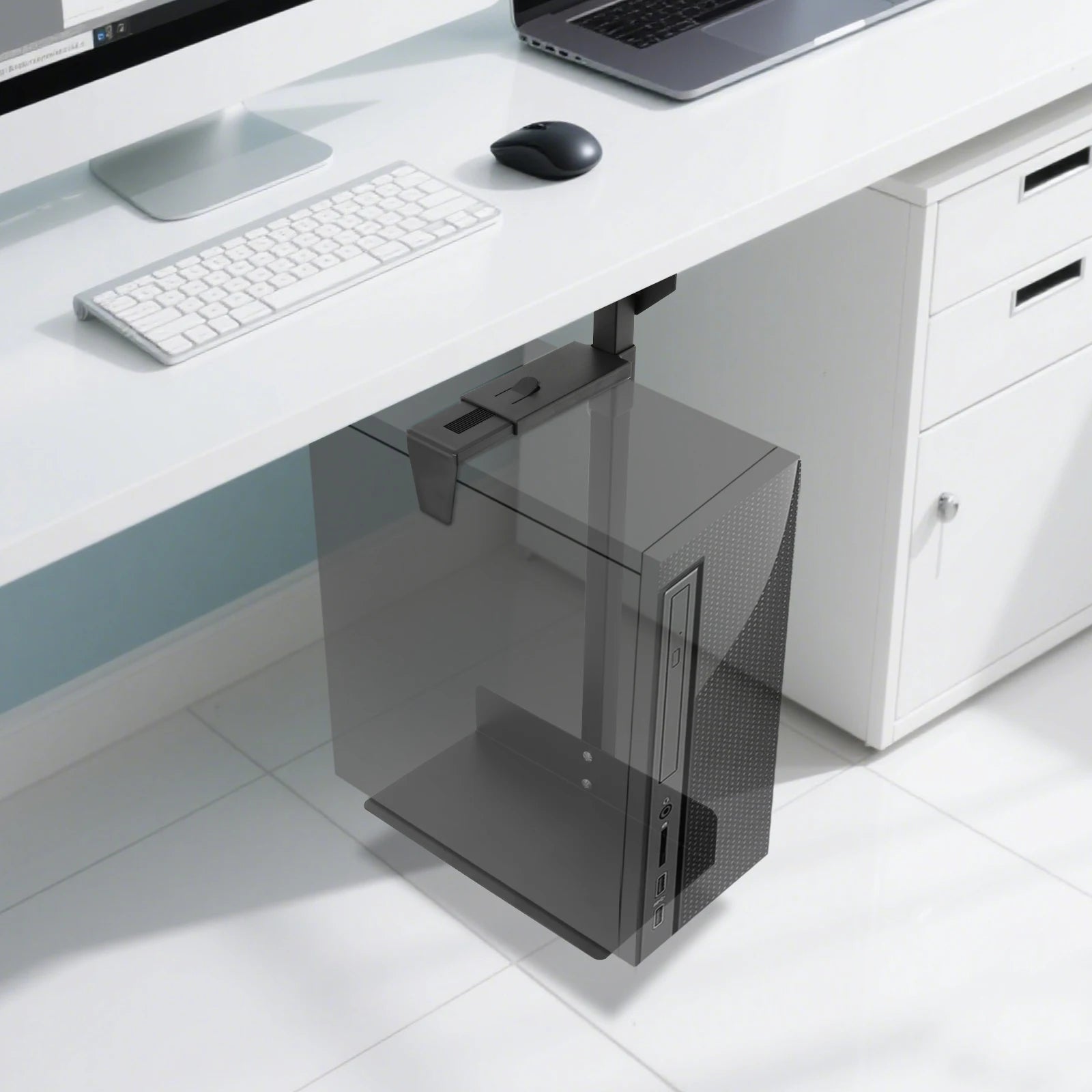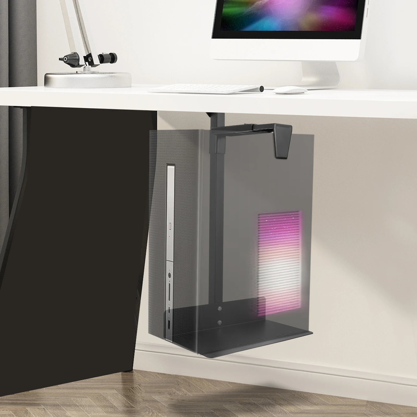 Idéal pour les bureaux modernes, les setups gaming ou les environnements professionnels, ce support permet de protéger votre PC de la poussière et des chocs au sol, tout en apportant une meilleure organisation et un look plus propre.